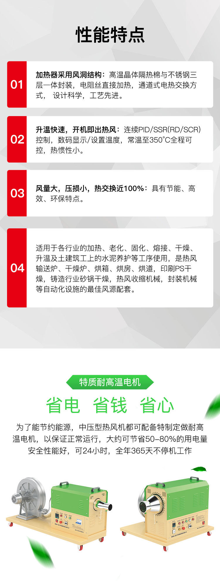 當(dāng)今社會(huì),品質(zhì)決定公司的發(fā)展基礎(chǔ),技術(shù)決定公司的發(fā)展前景。在熱風(fēng)設(shè)備的生產(chǎn)中,生產(chǎn)作業(yè)的品質(zhì)取決于優(yōu)良的質(zhì)材,熱風(fēng)機(jī)的電熱及電子技術(shù)的優(yōu)劣體現(xiàn)在設(shè)計(jì)技術(shù)的差異。如何在最小誤差內(nèi)確保正確的尺寸,如何在日新月異的發(fā)展潮流中始終走在熱風(fēng)行業(yè)的尖端,成為推動(dòng)圣能工業(yè)不懈發(fā)展的動(dòng)力。我們憑借多年的制造技術(shù)及理念,在一次次的生產(chǎn)中改進(jìn)技術(shù)及銷售理念,在一次次的生產(chǎn)中改進(jìn)技術(shù),不斷通過各種渠道引進(jìn)先進(jìn)技術(shù),使產(chǎn)品始終隨著社會(huì)的進(jìn)步而穩(wěn)步發(fā)展,盡可能為更廣泛客戶提供便利。一代代新產(chǎn)品開發(fā),凝聚了整個(gè)企業(yè)的智慧;科學(xué)合理的檢查系統(tǒng),體現(xiàn)圣能人精益求精的制作追求;為客戶提供周全的服務(wù),成為我們產(chǎn)業(yè)推廣的著重點(diǎn)。